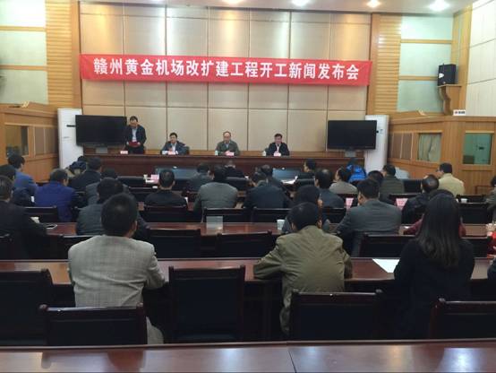 市政府召開贛州黃金機(jī)場改擴(kuò)建工程開工新聞發(fā)布會。圖為發(fā)布會現(xiàn)場。