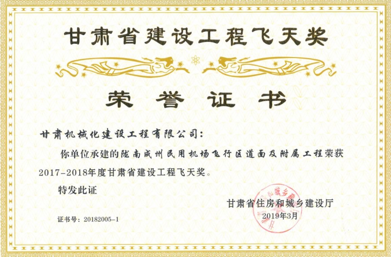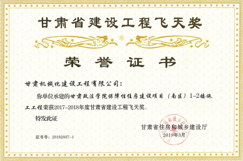 甘肅省住房和城鄉(xiāng)建設(shè)廳關(guān)于2017-2018年度(第二批)甘肅省建設(shè)工程飛天金獎和飛天獎入選名單公示已經(jīng)結(jié)束,我司共有兩個項(xiàng)目榮獲甘肅省建設(shè)工程飛天獎。