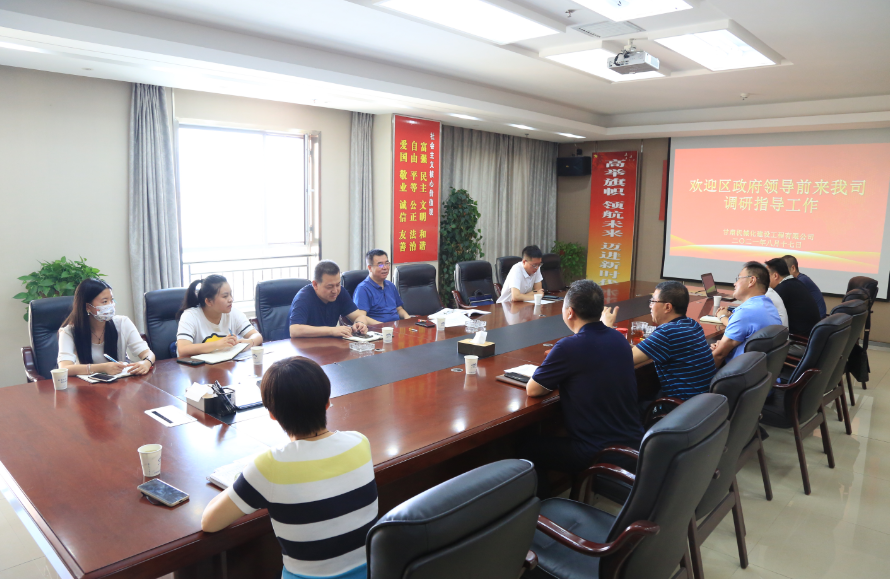 8月17日上午,西固區(qū)政府黨組成員、副區(qū)長陳良一行蒞臨我司調(diào)研指導(dǎo)工作,公司領(lǐng)導(dǎo)及相關(guān)人員陪同并參加座談會(huì)。