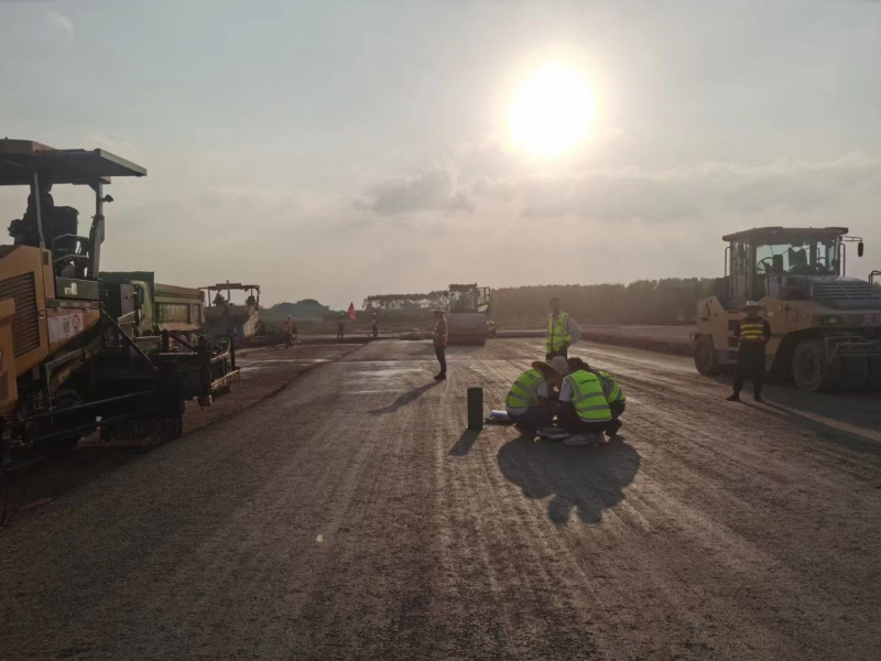 為確保試驗(yàn)段攤鋪設(shè)備工作高質(zhì)、高效進(jìn)行,項(xiàng)目部統(tǒng)一部署,各部門相互配合,認(rèn)真進(jìn)行施工前各項(xiàng)準(zhǔn)備工作,提前對(duì)有關(guān)人員進(jìn)行安全培訓(xùn)和技術(shù)交底。施工現(xiàn)場井然有序,項(xiàng)目負(fù)責(zé)人嚴(yán)格把控運(yùn)輸、攤鋪、碾壓、檢測等各施工環(huán)節(jié),保證施工質(zhì)量與安全,同時(shí)對(duì)試驗(yàn)段標(biāo)高、壓實(shí)度、平整度和厚度等各項(xiàng)指標(biāo)進(jìn)行實(shí)時(shí)檢測并記錄,確保各項(xiàng)指標(biāo)符合技術(shù)規(guī)范要求,并確定水穩(wěn)層松鋪系數(shù)、壓路機(jī)最佳碾壓遍數(shù)及速率,最終達(dá)到預(yù)期試驗(yàn)效果。
