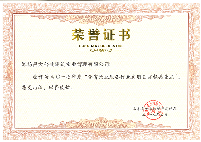 2017年12月被評為文明和諧物業(yè)企業(yè)